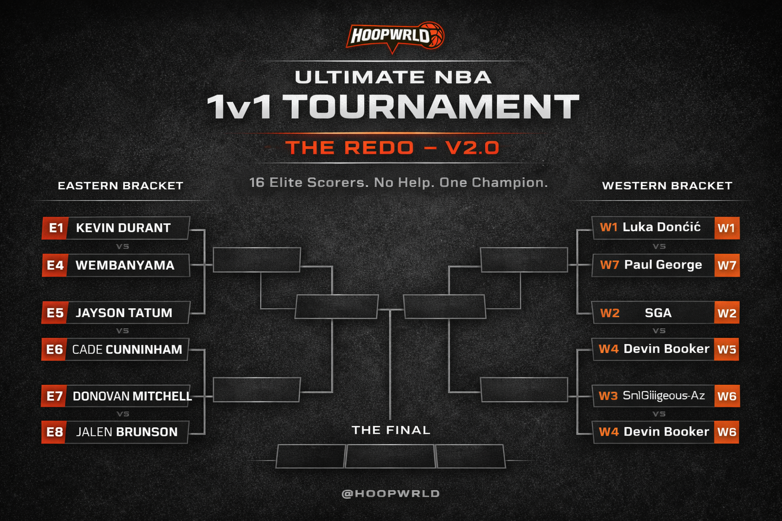 When we first built this tournament, Victor Wembanyama wasn’t in it. That was a mistake we couldn’t live with. The way Wemby is playing right now — the scoring, the shot-blocking on both ends, the handles, the range — he doesn’t just belong in this field. He changes every single matchup he touches.
